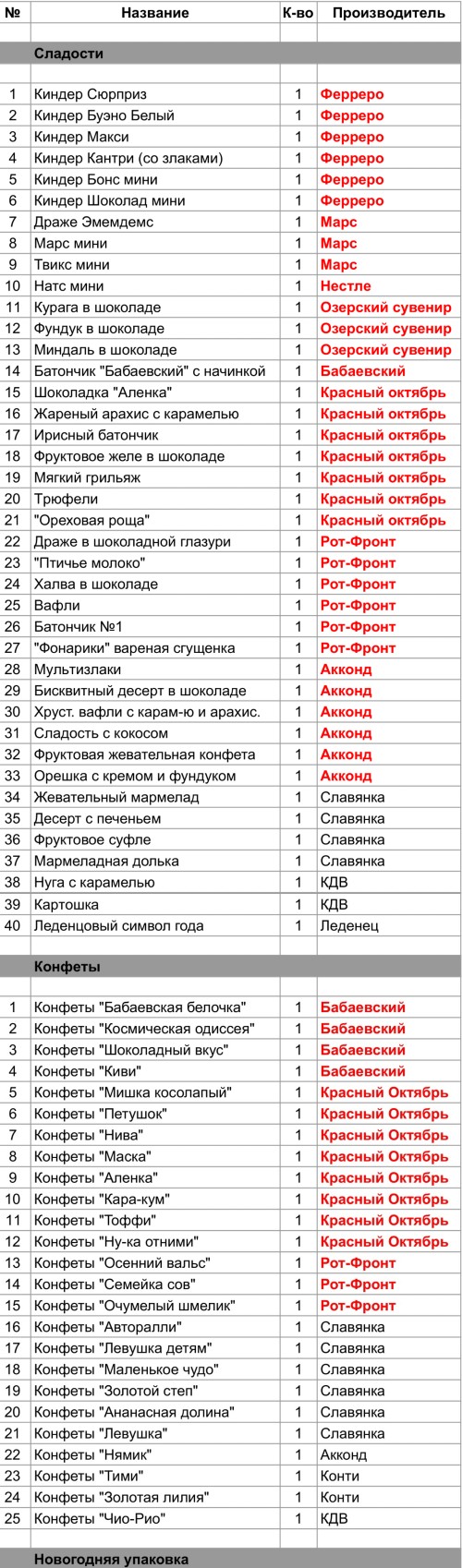 Опубликовано в Составы подарков